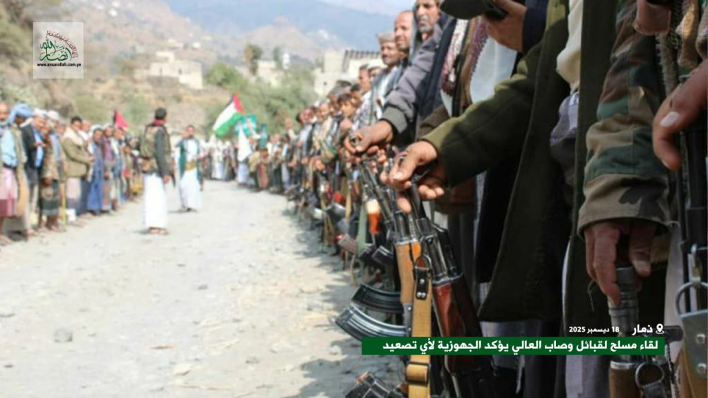 نُظمت بمديرية وصاب العالي محافظة ذمار اليوم وقفة قبلية مسلحة حاشدة تنديدا بالإساءة الأمريكية الممنهجة للمصحف الشريف.
