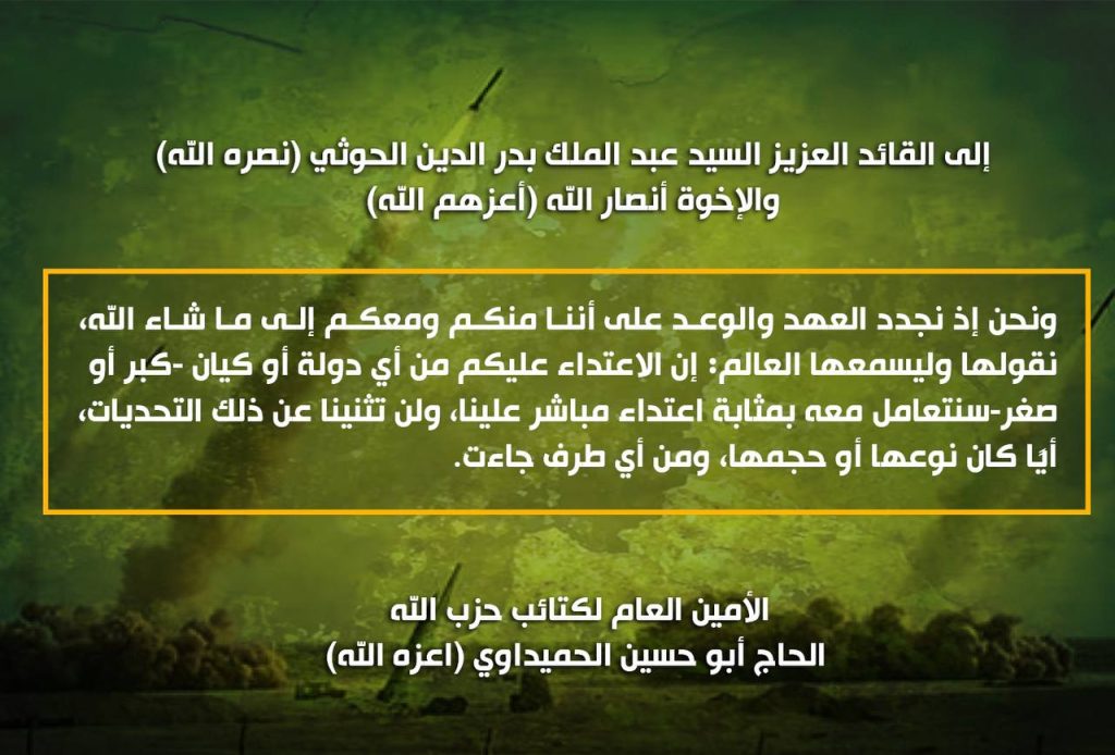 أمين عام حزب الله العراقي يوجه رسالة لقائد الثورة عقب التصنيف الأمريكي لأنصار الله