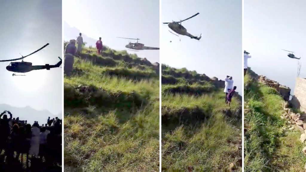 طائرات مروحية تشارك في إغاثة المتضررين من سيول الأمطار في ملحان بالمحويت