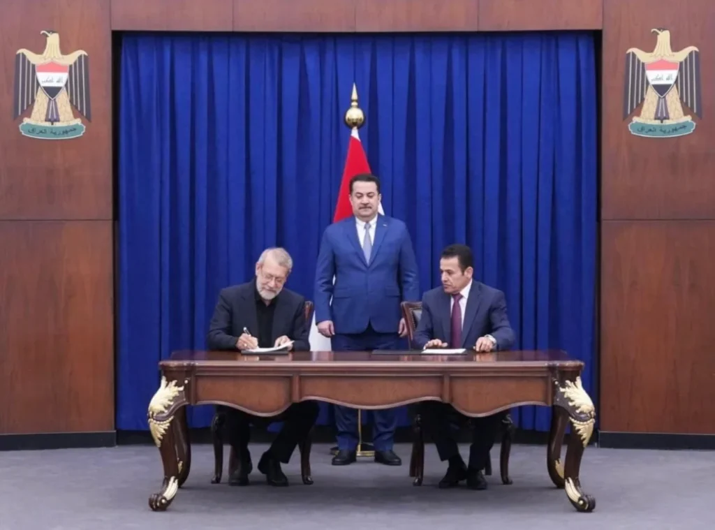 ووقّع كلّ من لاريجاني ومستشار الأمن القومي العراقي، قاسم الأعرجي، الاتفاقية، برعاية رئيس الحكومة العراقية، محمد شيّاع السوداني.