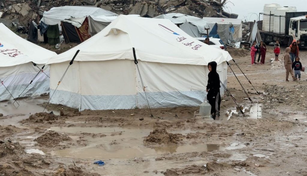 ويواجه النازحون في قطاع غزة برد الشتاء القارس والأمطار داخل خيام متهالكة، في ظل ظروف إنسانية مأساوية، جرّاء آثار حرب الإبادة واستمرار الحصار، وتنصّل الاحتلال من بنود الإيواء وإعادة الإعمار في اتفاق وقف إطلاق النار الموقّع في أكتوبر2025.
