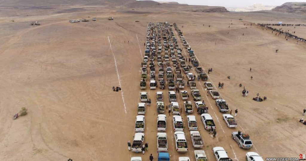 سيّر أبناء محمية خربة سعوان بمديرية بني حشيش محافظة صنعاء، اليوم الأحد، القافلة الخامسة من فاكهة الخوخ للمرابطين في جبهات الدفاع عن الوطن.