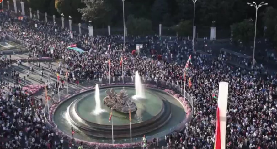 مظاهرات عاصفة في أنحاء أوروبا مناهضة للكيان الإسرائيلي… فمع مواصلة موجة الغضب الشعبي خرج عشرات الآلاف إلى شوارع العاصمة الإسبانية مدريد وعدد من المدن الكبرى مثل برشلونة، دعماً لفلسطين ورفضاً لاعتراض سفن أسطول الصمود العالمي لكسر الحصار عن قطاع غزة.