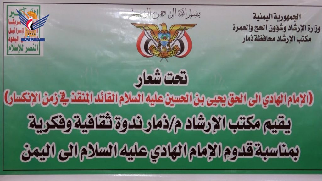 نظم مكتب الإرشاد وشؤون الحج والعمرة بمحافظة ذمار والوحدة الثقافية ندوة ثقافية اليوم السبت، بمناسبة ذكرى قدوم الإمام الهادي عليه السلام إلى اليمن.
