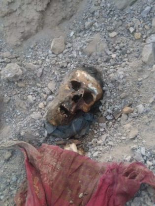 وعثرت الكلاب على الجثة المجهولة في حفرة عمقها لا يجاوز متراً بعد أن قامت بنبشها لتكتشف الجثة المتحللة التي لم يتبقَ منها الا جمجمة الرأس.